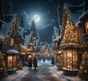 Die Straßen von Hogsmeade, gesäumt von verschneiten, windschiefen Häuschen, werden in den Adventswochen zu einem Treffpunkt für Schüler, Hexen und Zauberer: